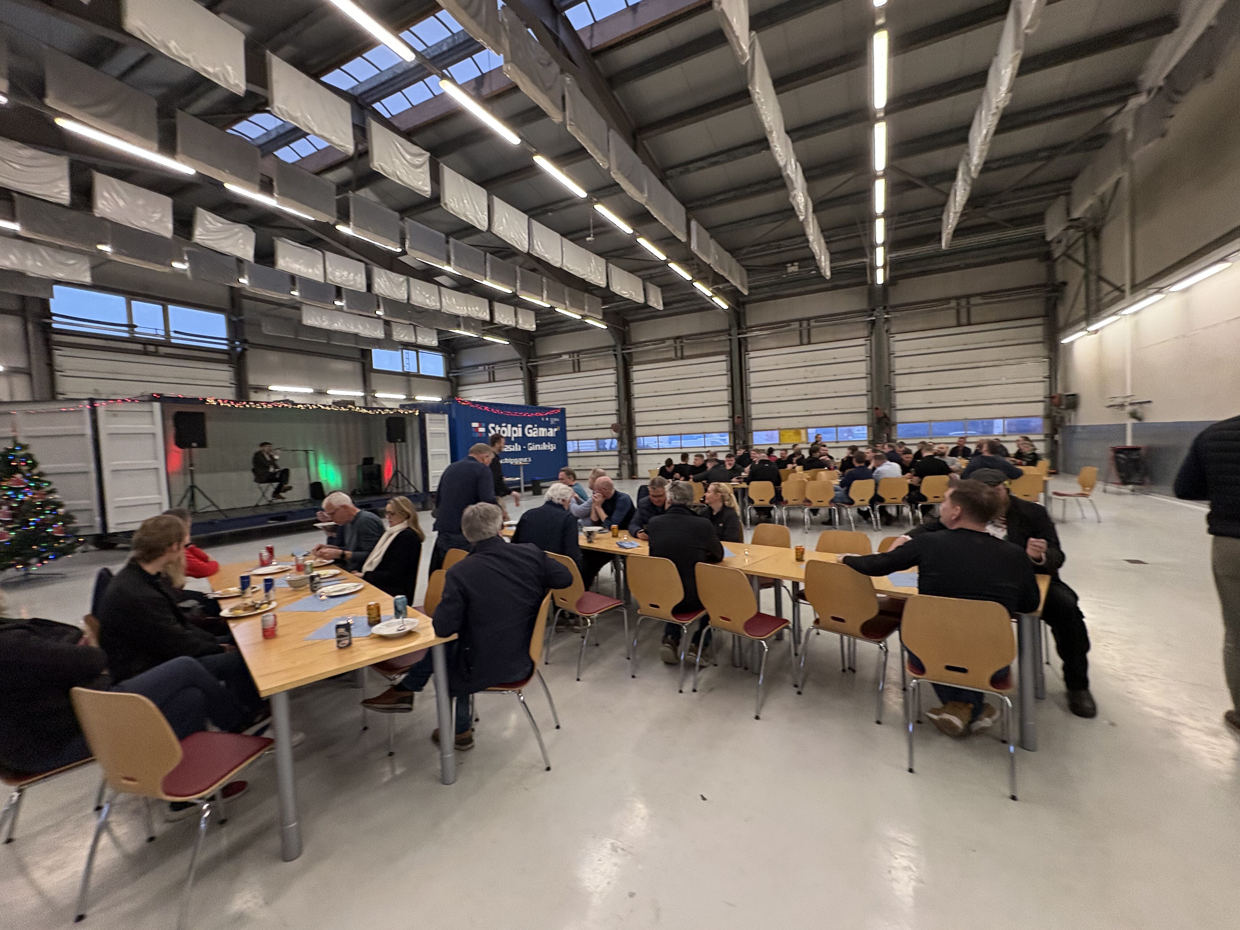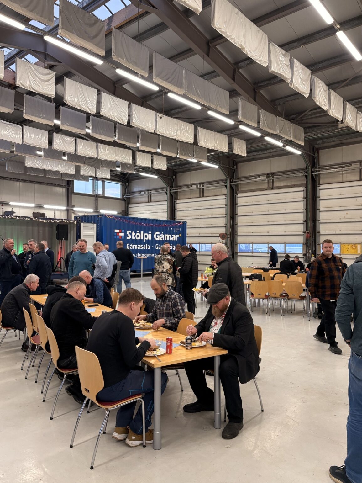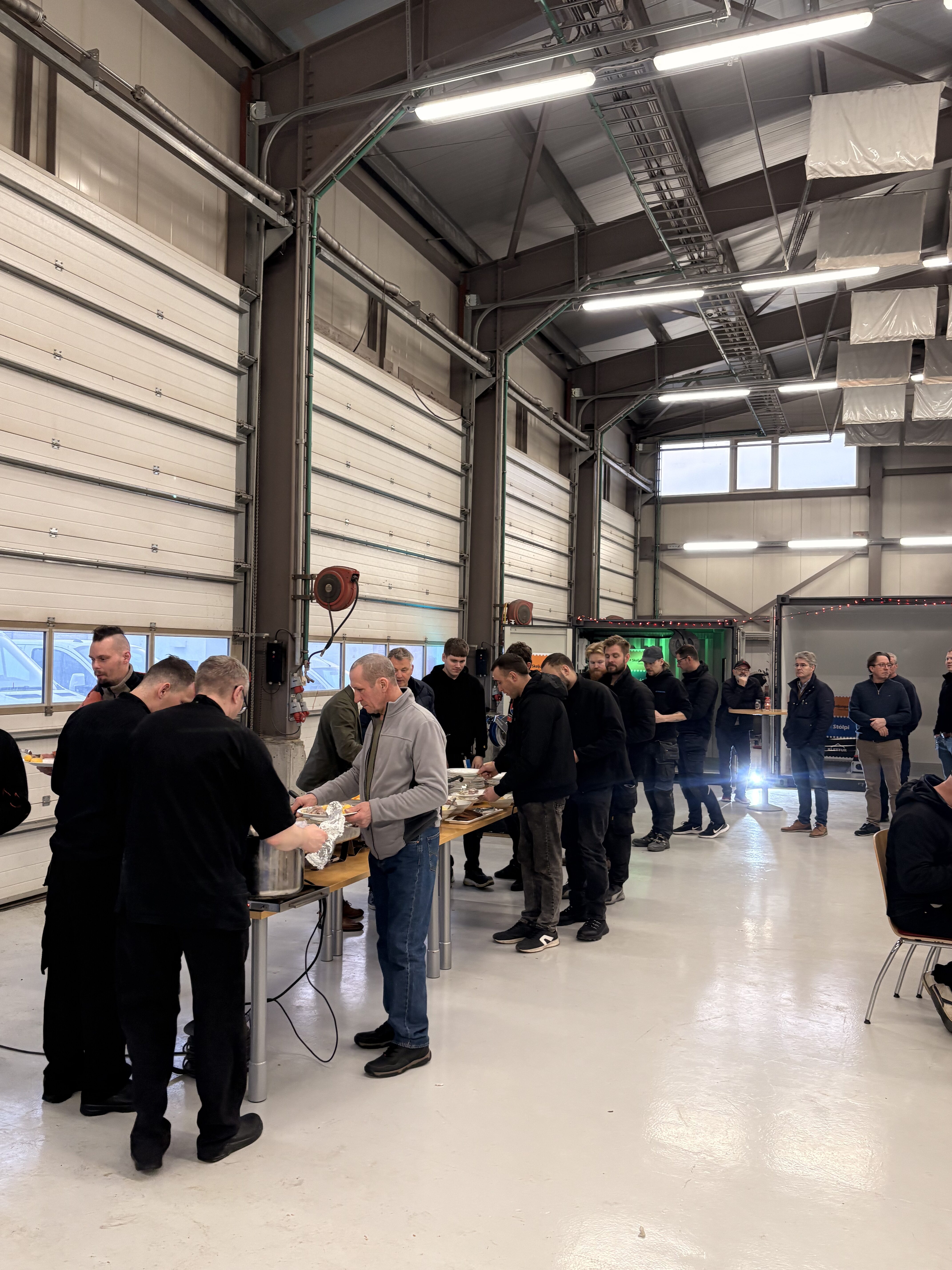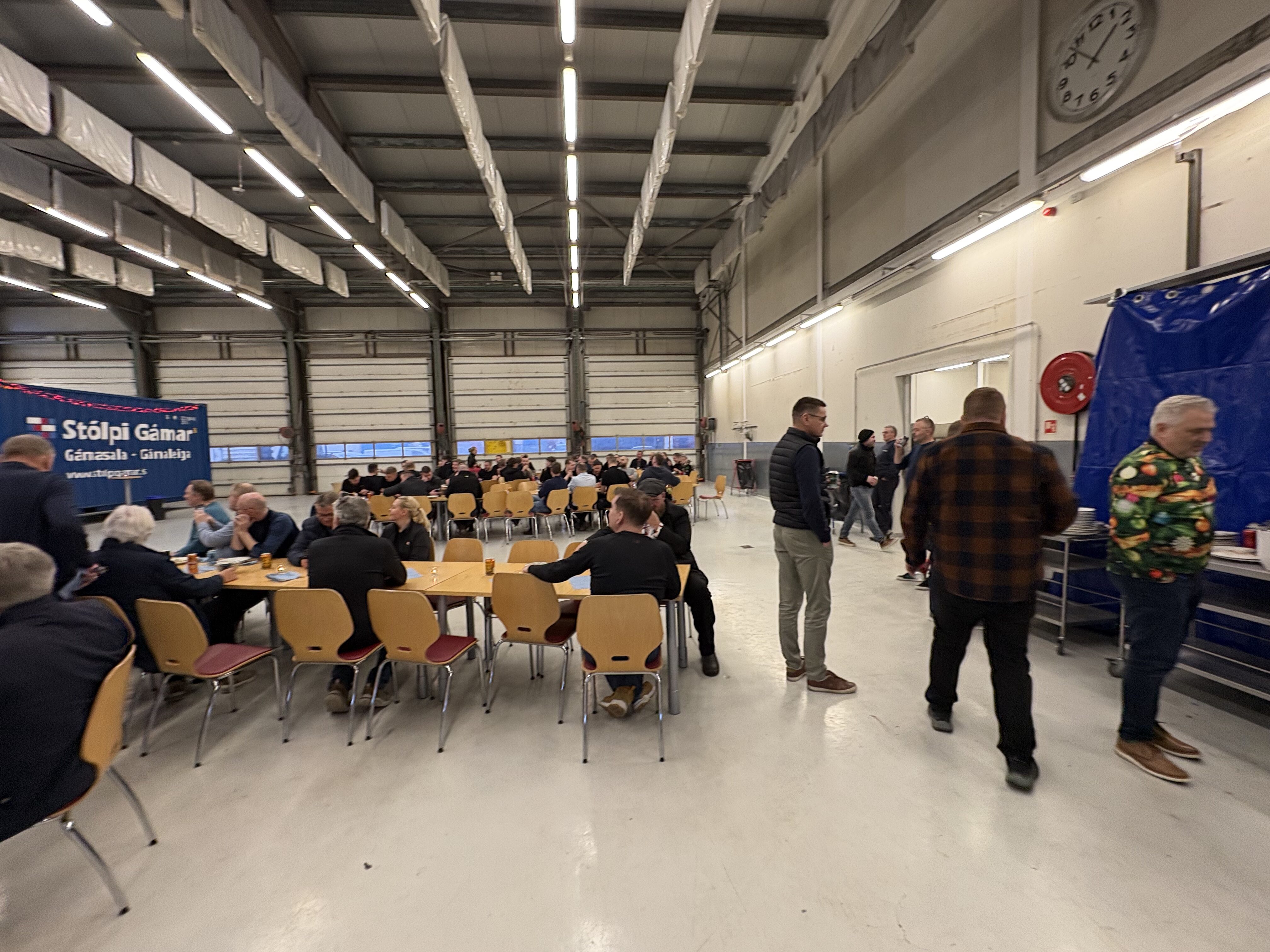 Stólpi Smiðja, Alkul og Stólpi Trésmiðja buðu til veglegrar skötuveislu í Sægörðum 15. Í boði var vel kæst skata, tindabikkja og saltfiskur ásamt ljúffengu meðlæti frá Pottinum og Pönnunni.