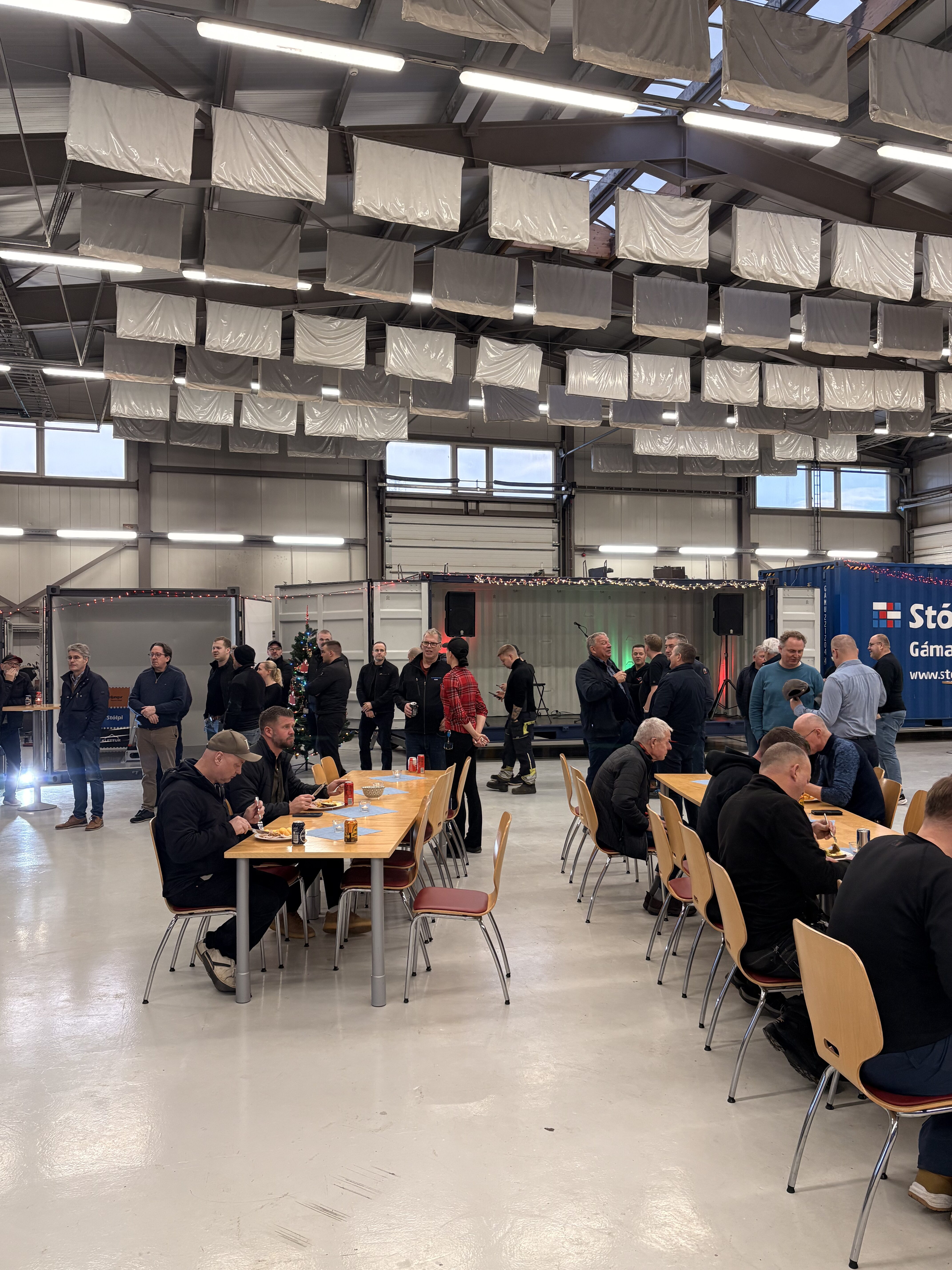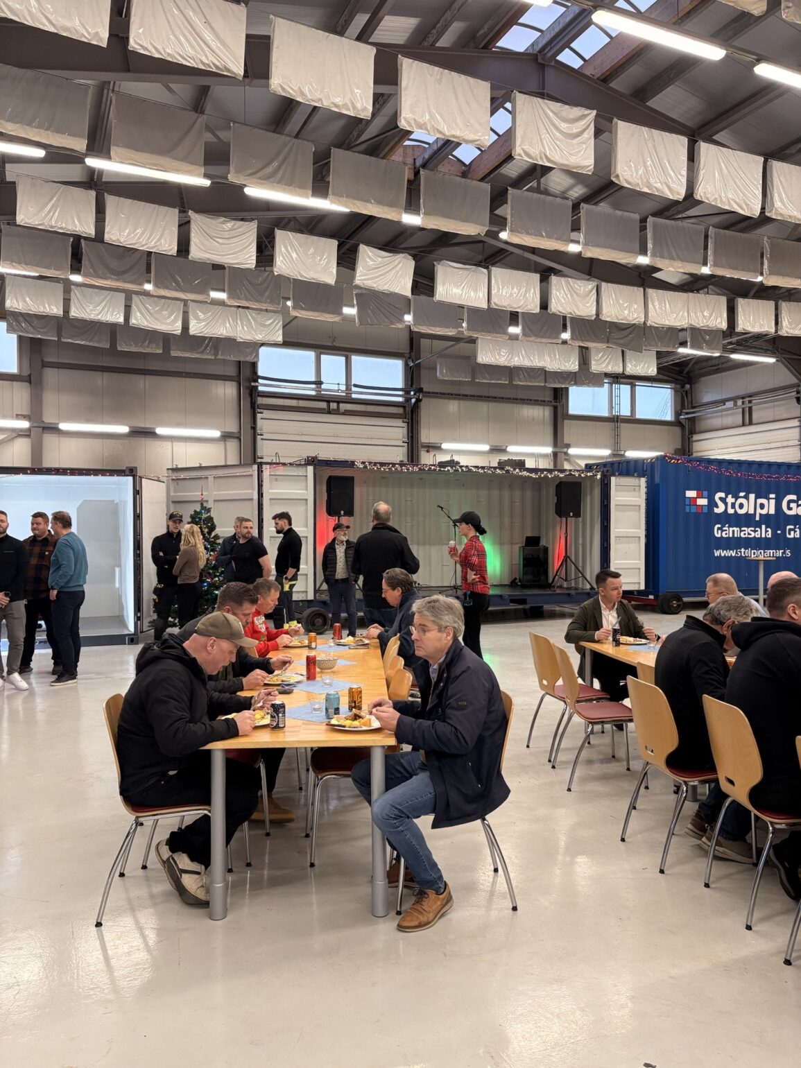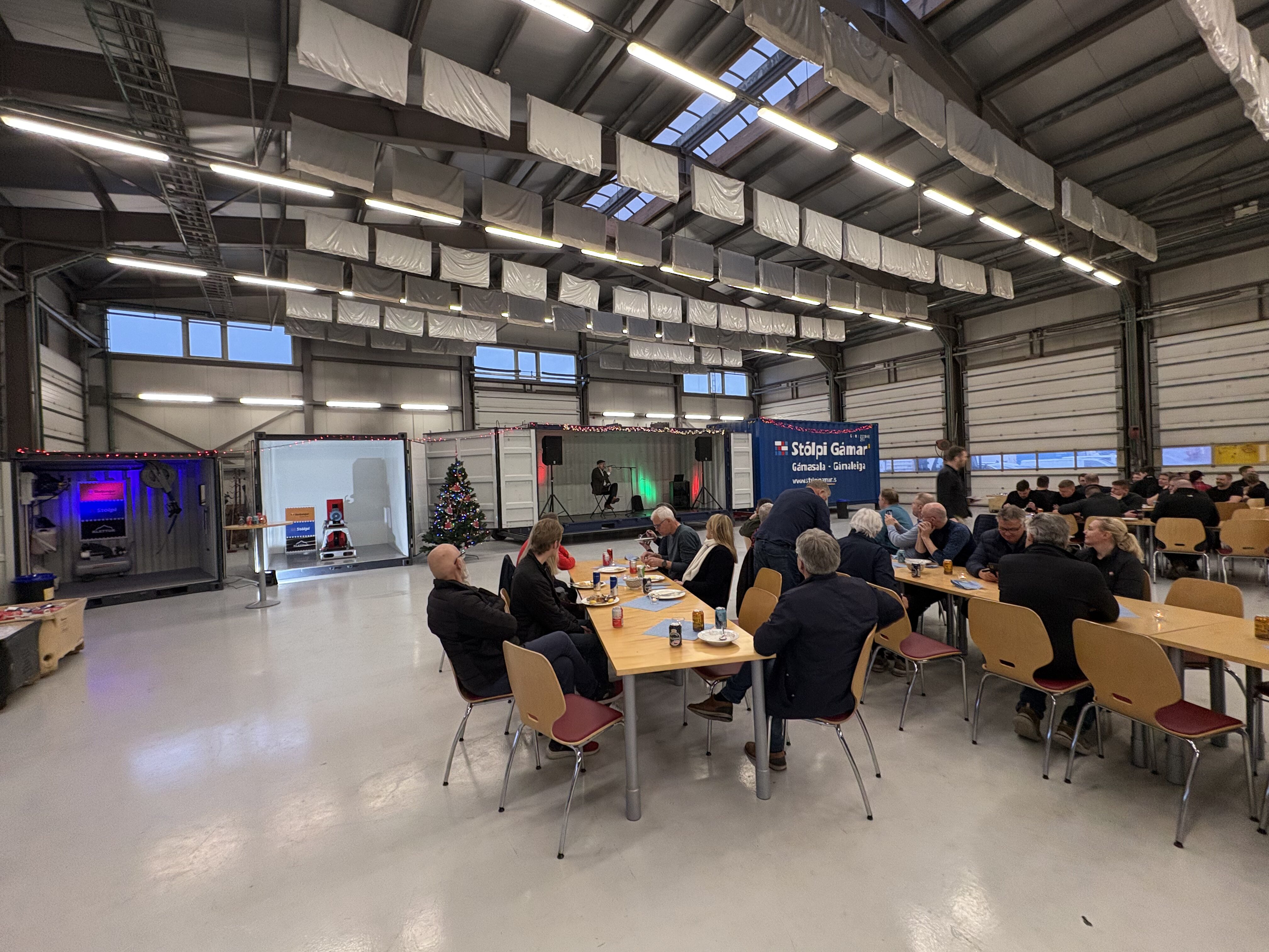 Stólpi Smiðja, Alkul og Stólpi Trésmiðja buðu til veglegrar skötuveislu í Sægörðum 15. Í boði var vel kæst skata, tindabikkja og saltfiskur ásamt ljúffengu meðlæti frá Pottinum og Pönnunni.