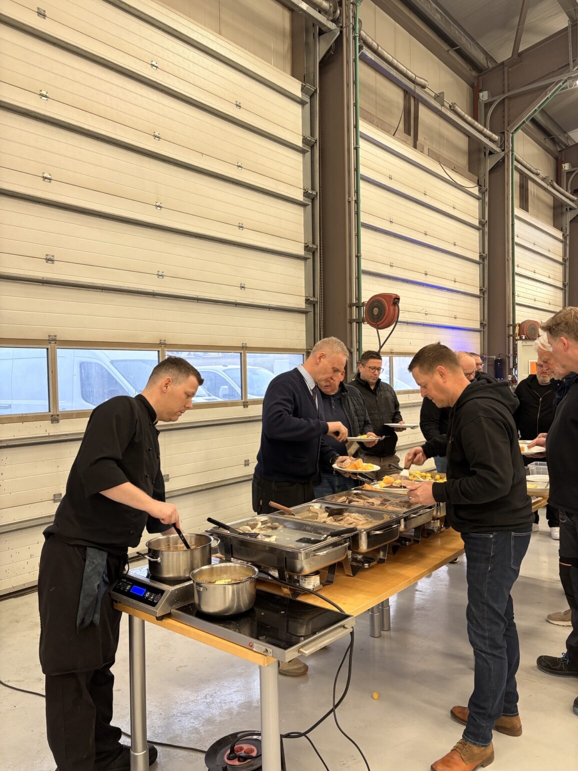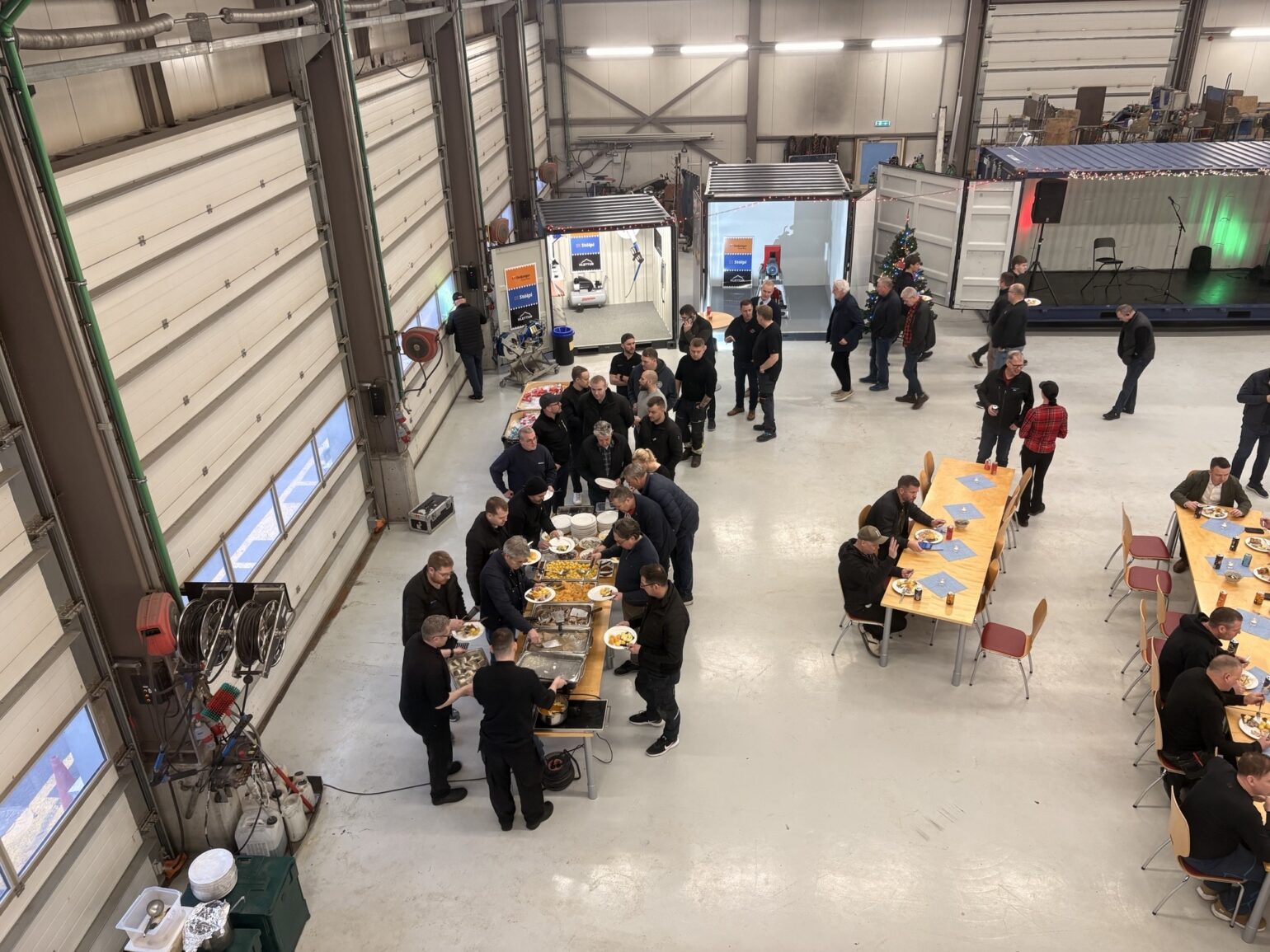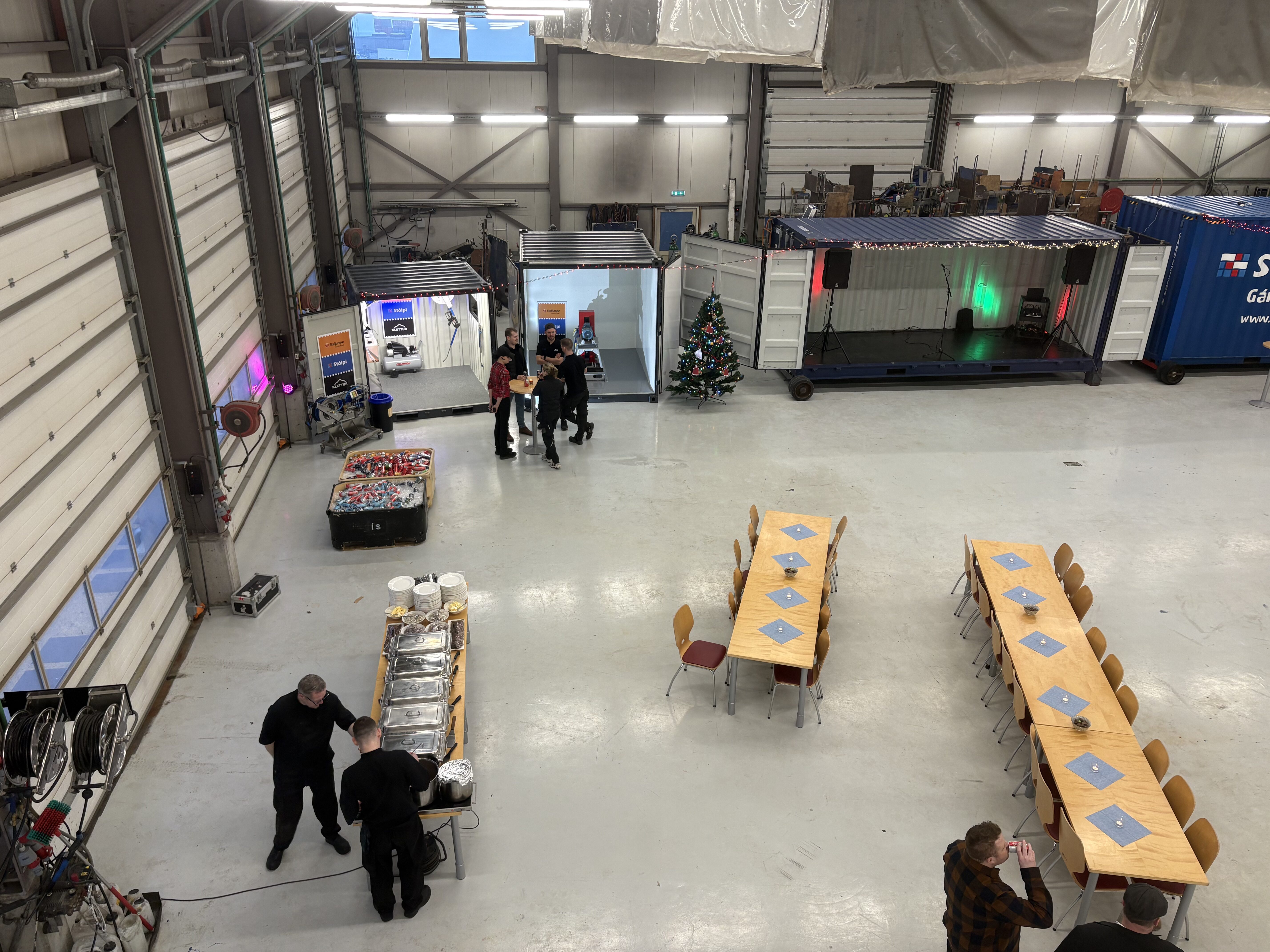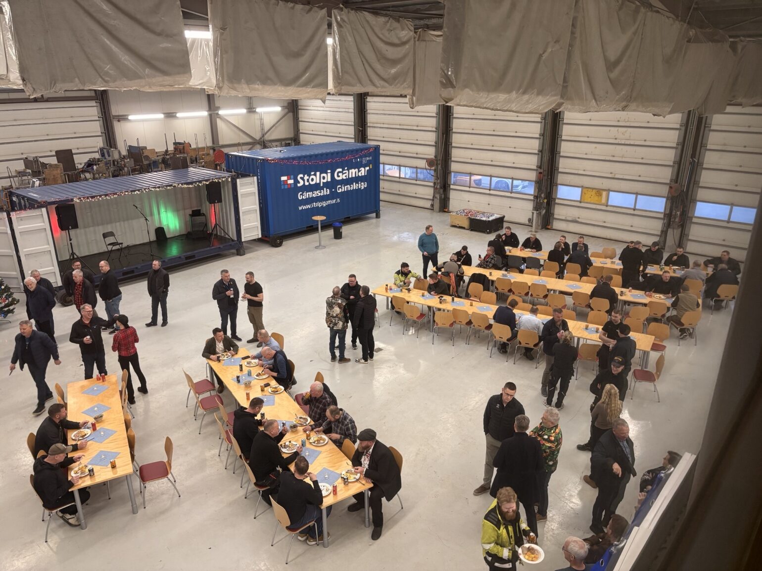 Stólpi Smiðja, Alkul og Stólpi Trésmiðja buðu til veglegrar skötuveislu í Sægörðum 15. Í boði var vel kæst skata, tindabikkja og saltfiskur ásamt ljúffengu meðlæti frá Pottinum og Pönnunni.